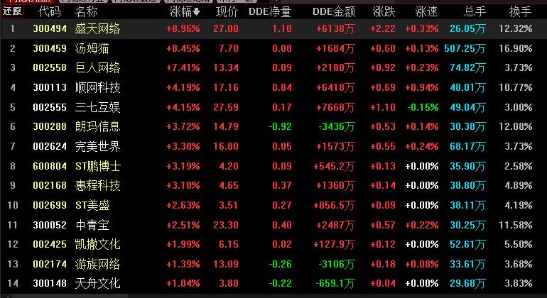 具體看,截至3月24日上午收盤,云游戲板塊漲幅居首達(dá)2.48%。其中,盛天網(wǎng)絡(luò)、湯姆貓等概念股漲幅均超8%。