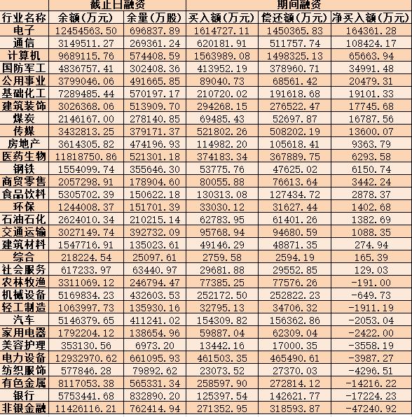 表:3月23日申萬(wàn)一級(jí)行業(yè)兩融交易情況: