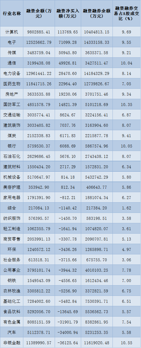 表:3月24日申萬(wàn)一級(jí)行業(yè)兩融交易情況: