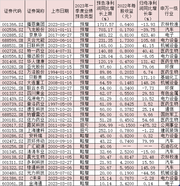 表:已披露2023年一季度業(yè)績預告且預喜的公司