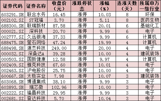 表:連續(xù)上漲3日且今日收盤漲停個(gè)股情況: