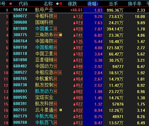對此,中信建投證券分析認為,航母產(chǎn)業(yè)板塊進入戰(zhàn)略配置期,首選優(yōu)選民參軍公司,關(guān)注混改階段性機會。在標的選擇上,首推相關(guān)龍頭公司,尤其是市場化程度較高、上市公司核心資產(chǎn)占比高、受益于產(chǎn)業(yè)鏈業(yè)績釋放的中航系上市公司。其次推薦技術(shù)門檻較高,市場空間大,具備核心競爭力與先發(fā)優(yōu)勢且估值合理的民參軍公司。同時還可以關(guān)注混改帶來的階段性機會,主要是南船、兵器、航天集團中的小市值公司。推薦標的:中直股份、中航機電、中航光電、中國動力、國??萍肌⑻煦y機電、航新科技、海蘭信等。