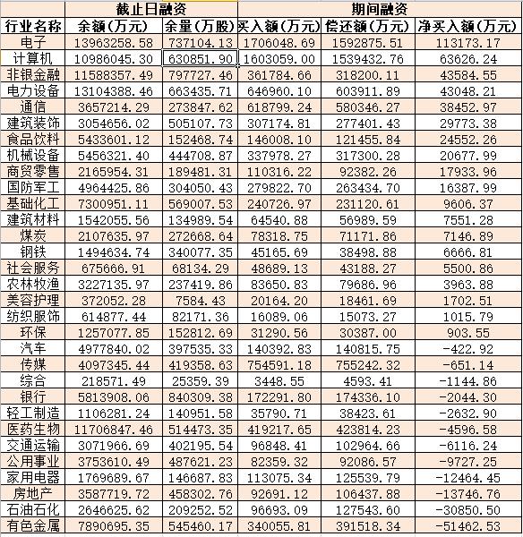 表:4月20日申萬一級行業(yè)兩融交易情況: