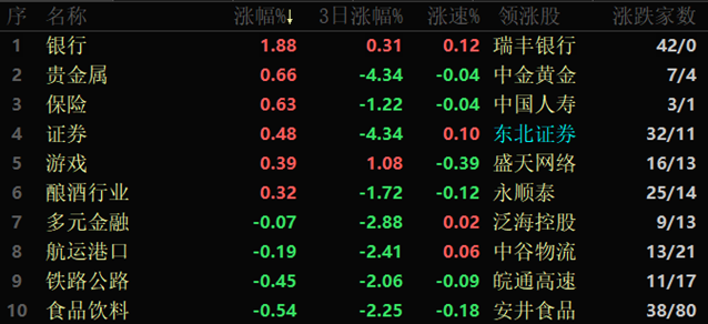 從早盤表現(xiàn)強(qiáng)勢的銀行行業(yè)看,交易中的42只成份股全線上漲,其中,有3只個(gè)股漲幅超5%。資金方面,有2.29億元大單資金凈流入該行業(yè),居各行業(yè)第2位。