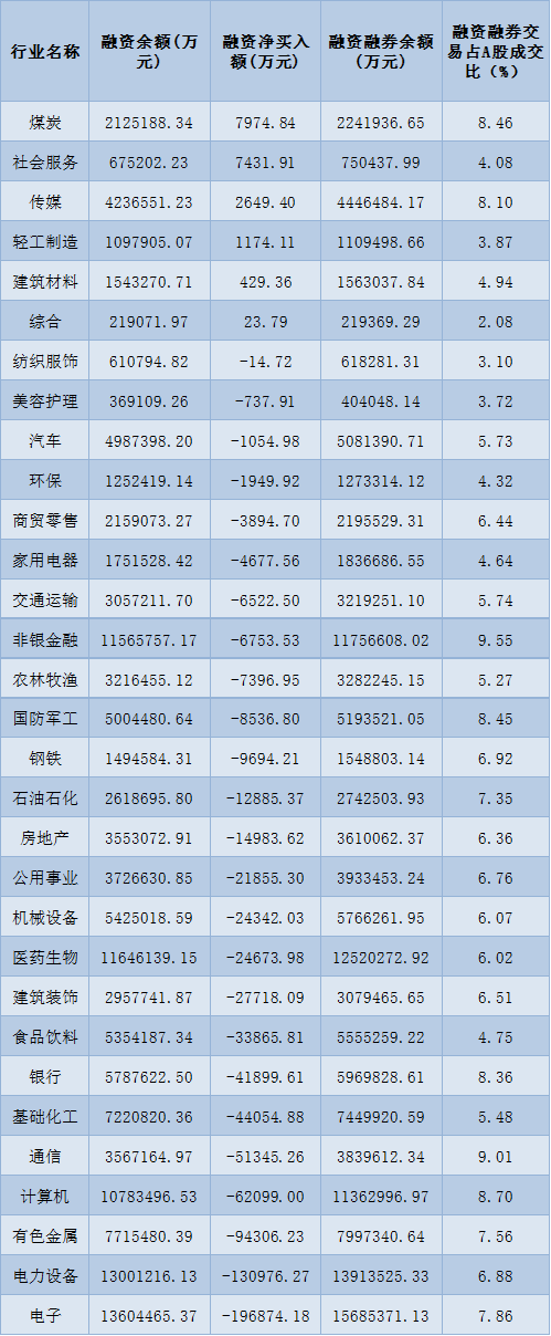 表:4月25日申萬(wàn)一級(jí)行業(yè)兩融交易情況: