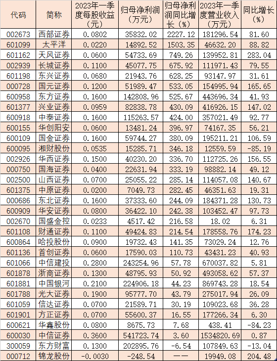 表:已披露2023年一季報的上市券商業(yè)績