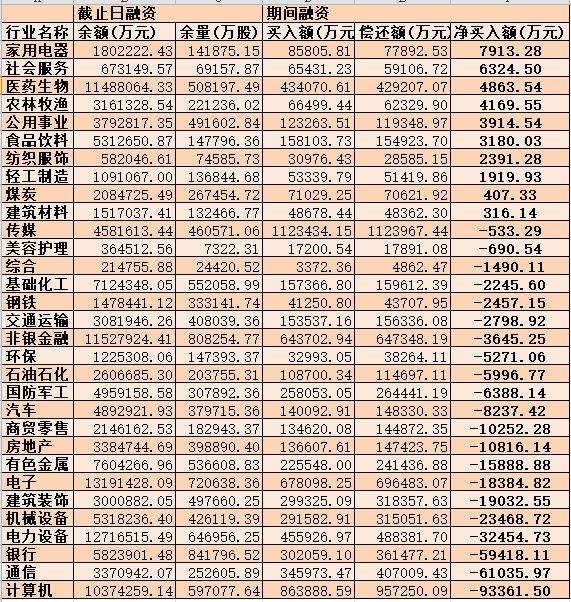 表:5月5日申萬(wàn)一級(jí)行業(yè)兩融交易情況: