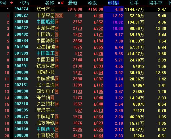具體看,截至5月8日上午收盤,航母產(chǎn)業(yè)板塊漲幅居首達(dá)4%。其中,中船應(yīng)急、中國(guó)船舶、中船科技等多只概念股漲幅均超10%。