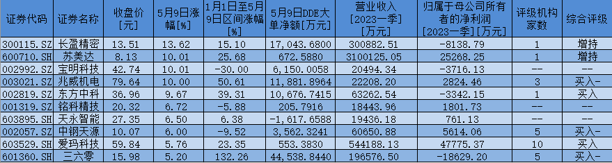 表:5月9日,新能源汽車概念板塊漲幅超5%個(gè)股一覽