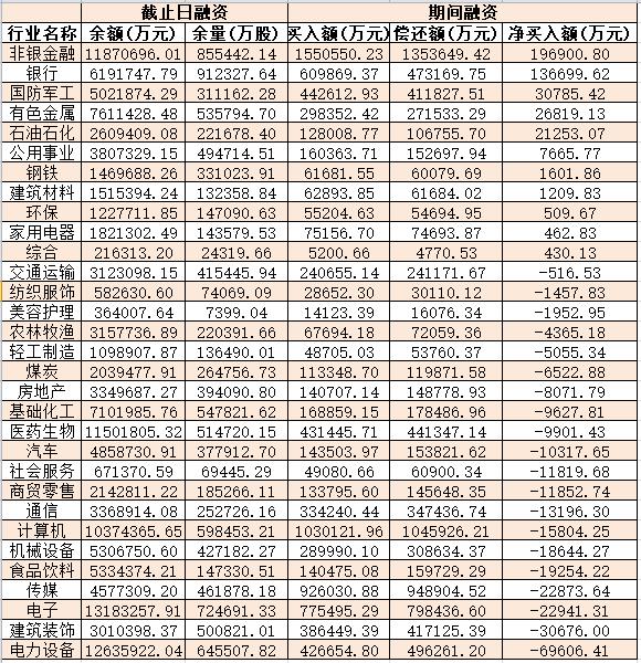 表:5月9日申萬一級行業(yè)兩融交易情況: