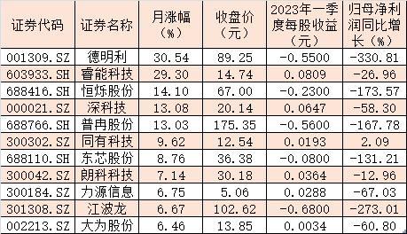 表:月內(nèi)累計(jì)漲幅超6%的存儲(chǔ)芯片概念股