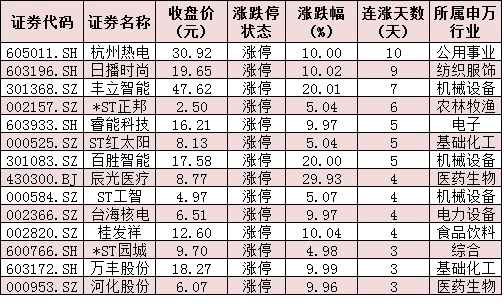 表:連續(xù)上漲4日且今日收盤漲停個(gè)股情況: