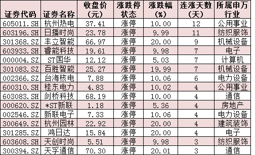 表:連續(xù)上漲3日且今日收盤漲停個股情況: