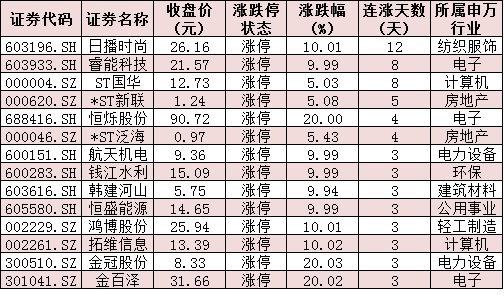 表:連續(xù)上漲3日且今日收盤漲停個股情況: