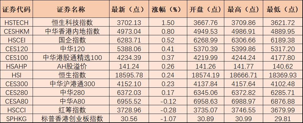 表:5月30日港股市場(chǎng)重要指數(shù)表現(xiàn)一覽
