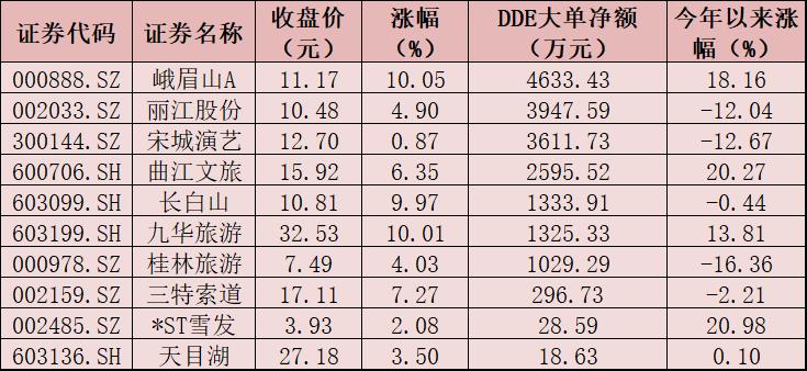 表:5月31日獲大單資金凈買(mǎi)入的景點(diǎn)及旅游股一覽