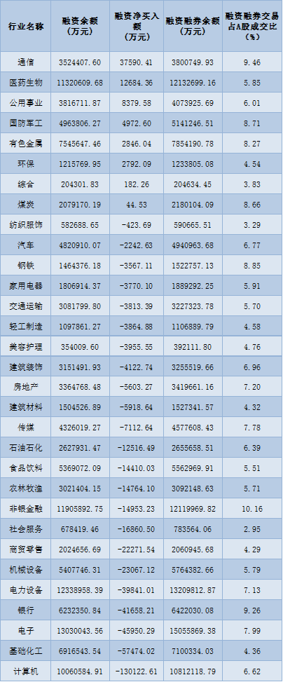 表:6月2日申萬一級(jí)行業(yè)兩融交易情況: