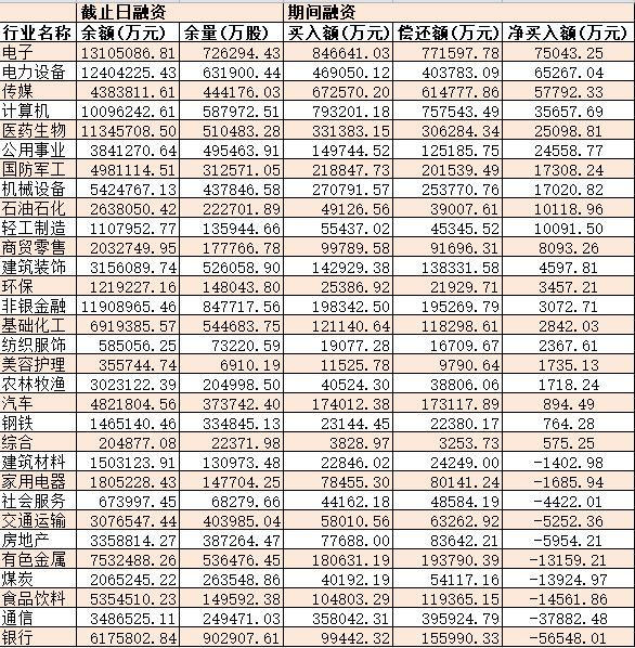 表:6月5日申萬(wàn)一級(jí)行業(yè)兩融交易情況: