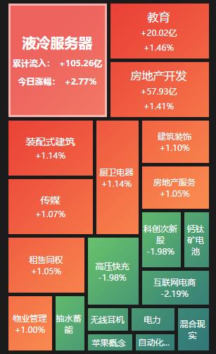 具體看,截至6月6日上午收盤(pán),液冷服務(wù)器板塊漲幅居首,達(dá)2.77%,資金凈流入達(dá)105.26億元。其中,英特科技、高瀾股份等概念股漲幅均超10%。