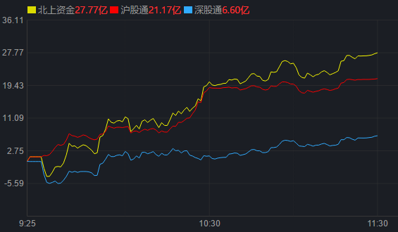 從資金面來(lái)看,6月7日上午,北上資金凈買入金額達(dá)27.77億元,其中,滬股通凈買入21.17億元,深股通凈買入6.60億元。