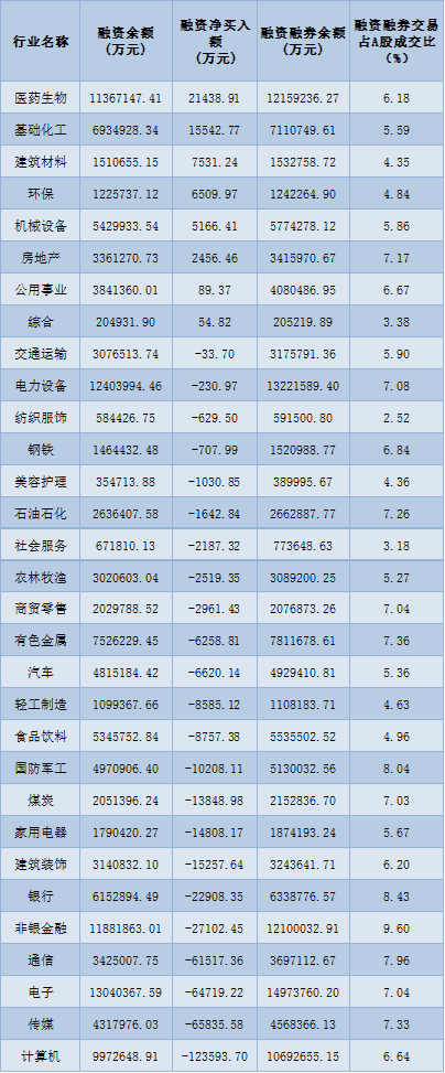 表:6月6日申萬(wàn)一級(jí)行業(yè)兩融交易情況: