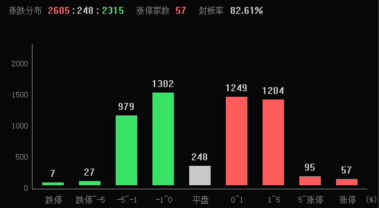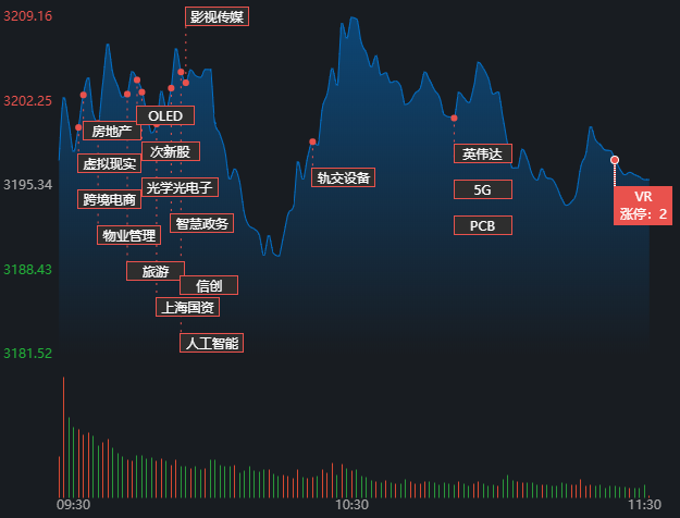 6月7日早盤,A股三大指數(shù)震蕩分化,滬市表現(xiàn)相對(duì)強(qiáng)勢(shì)。截至上午11:30,上證指數(shù)漲0.02%,報(bào)3195.88點(diǎn),深證成指和創(chuàng)業(yè)板指跌幅分別為0.37%和1.32%;滬深兩市成交額合計(jì)5022.5億元??傮w來(lái)看,A股市場(chǎng)個(gè)股漲多跌少,有2605只上漲,2315只下跌,漲跌停方面,有57只個(gè)股漲停,跌停股7只。