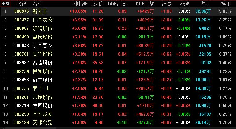 具體看,截至6月8日上午收盤,養(yǎng)殖業(yè)板塊漲幅居前,達(dá)2.07%。其中,新五豐、巨星農(nóng)牧、曉鳴股份等概念股漲幅均超6%。