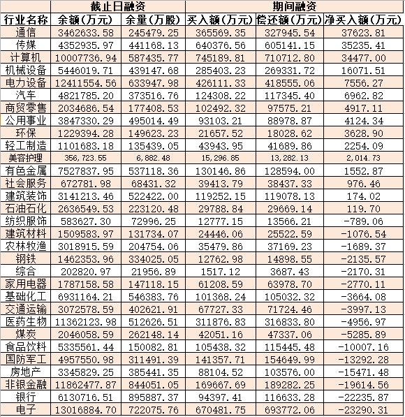 表:6月7日申萬(wàn)一級(jí)行業(yè)兩融交易情況: