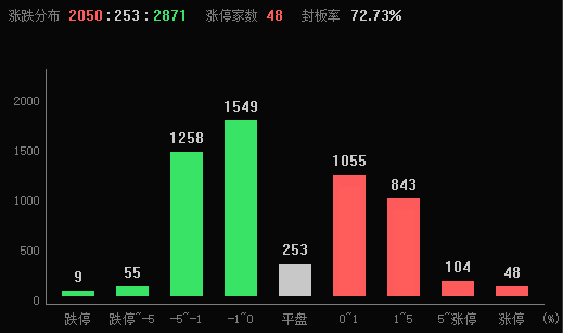 6月9日早盤,A股三大指數(shù)震蕩分化,滬市表現(xiàn)相對強勢。截至上午11:30,上證指數(shù)略漲0.03%,報3214.41點,深證成指和創(chuàng)業(yè)板指分別略跌0.05%和0.10%;滬深兩市成交額合計5640.7億元??傮w來看,A股市場個股漲少跌多,有2050只上漲,2871只下跌,漲跌停方面,有48只個股漲停,跌停個股9只。