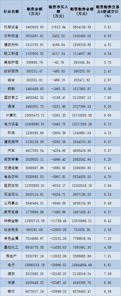 表:6月8日申萬一級行業(yè)兩融交易情況: