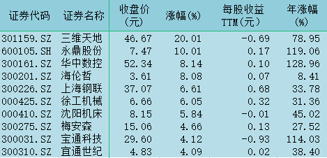 表:今日工業(yè)互聯(lián)網(wǎng)概念板塊漲幅排名前十個股一覽