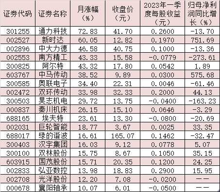 今年一季度,減速器板塊上市公司業(yè)績改善明顯。同花順數據顯示,在45家減速器板塊上市公司中,19家公司今年一季度歸母凈利潤實現(xiàn)同比增長,占比逾四成。