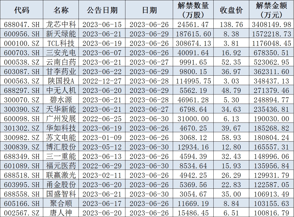 下周解禁市值逾500億元,哪些行業(yè)存在潛在機(jī)會?2023-06-18 21:13