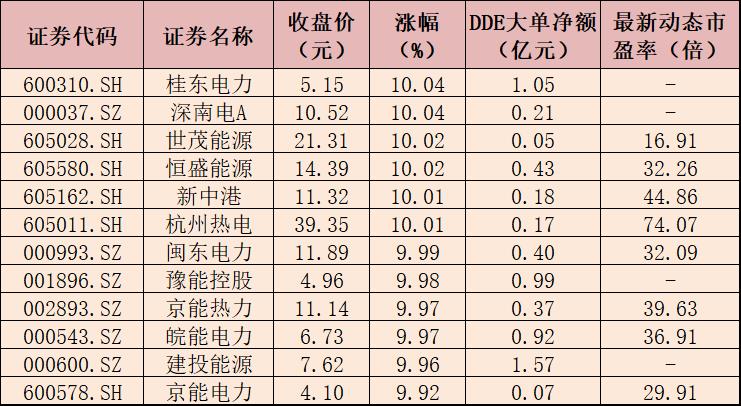 表:6月26日12只漲停的電力概念股一覽