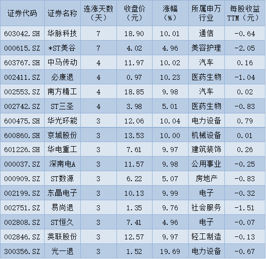 表:連續(xù)上漲4日且今日收盤漲停股一覽