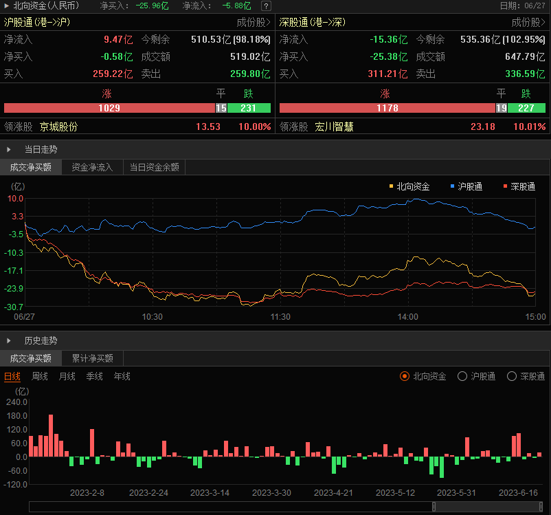 6月27日,A股三大指數(shù)震蕩上漲。行業(yè)板塊和個股漲多跌少,北向資金凈賣出近26億元。有機構(gòu)分析人士表示,拉長周期來看,A股后期走勢樂觀,下半年行情大概率會好于上半年。