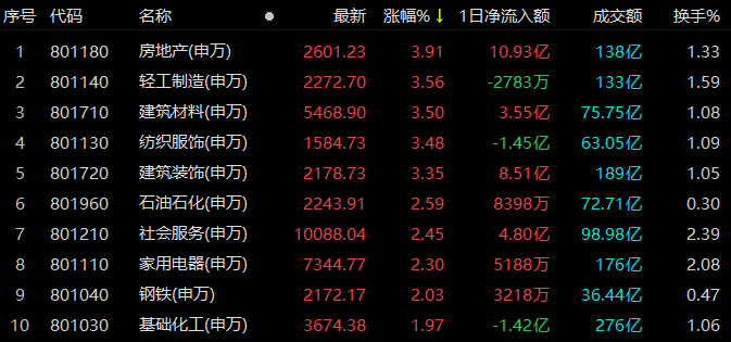 6月27日,行業(yè)漲多跌少,從31個申萬一級行業(yè)看,全線上漲,房地產(chǎn)行業(yè)漲幅居首,達(dá)3.91%,大單資金凈流入10.93億元,此外,包括輕工制造和建筑材料等在內(nèi)的4個行業(yè)漲幅均超3%。
