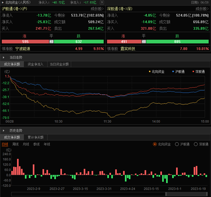 6月28日,滬指早盤出現(xiàn)快速下跌,最低至3157.12點(diǎn),隨后企穩(wěn)回升,午盤后一度翻紅。最終,上證指數(shù)平盤報(bào)收3189.38點(diǎn);深證成指跌0.47%報(bào)10926.32點(diǎn),創(chuàng)業(yè)板指跌0.44%報(bào)2182.10點(diǎn)。A股合計(jì)成交額8897.09億元,較前一交易日增長5.63%;北向資金全天凈賣出40.72億元;其中滬股通凈流出25.83億元,深股通凈流出14.89億元。
