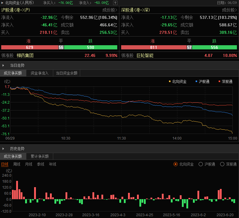 6月29日,A股三大指數(shù)震蕩收陰。個(gè)股漲多跌少,北向資金凈賣出逾76億元。有機(jī)構(gòu)分析人士表示,如果下半年出現(xiàn)更多經(jīng)濟(jì)企穩(wěn)信號(hào),外部環(huán)境邊際改善,預(yù)期中的利好政策落地,A股市場(chǎng)表現(xiàn)會(huì)因此提升。