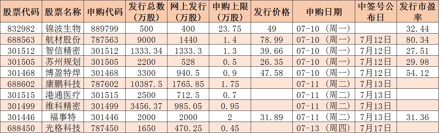 根據(jù)發(fā)行安排,下周有10只新股發(fā)行,包括3只科創(chuàng)板新股、6只創(chuàng)業(yè)板新股、1只北交所新股。