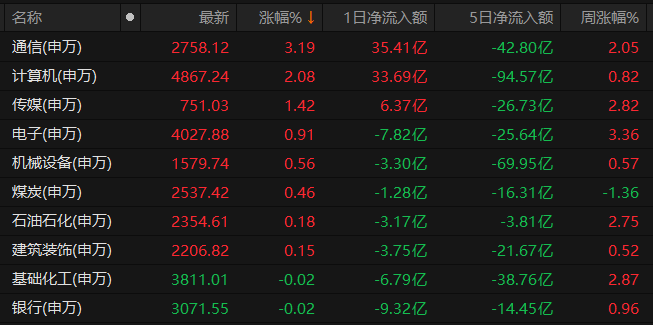 7月14日,行業(yè)漲少跌多。從31個申萬一級行業(yè)看,有8個上漲,占比25.81%,通信行業(yè)漲幅居首,達3.19%,大單資金凈流入35.41億元,此外,計算機行業(yè)漲幅也超2%。下跌方面,電力設備行業(yè)居首,跌幅為1.56%,此外,汽車和社會服務等2個行業(yè)跌幅也均超1%。