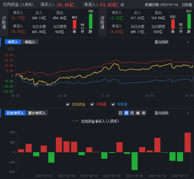 7月14日,A股三大指數(shù)震蕩分化。個股漲少跌多,北向資金凈買入逾10億元。周線來看,滬指形成上穿5周、10周和60周均線的中陽線,受阻于30周均線。有樂觀的機構分析人士表示,在政策面仍較為積極且流動性合理充裕的大背景下,震蕩向上仍是大趨勢。