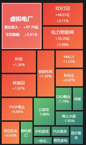 熱點(diǎn)方面,據(jù)同花順顯示,截至7月17日上午收盤(pán),虛擬電廠、3D打印、電力物聯(lián)網(wǎng)等板塊漲幅居前。另外,醫(yī)療服務(wù)、黑色家電等板塊跌幅居前。