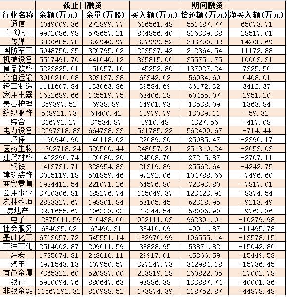 表:7月14日申萬(wàn)一級(jí)行業(yè)兩融交易情況