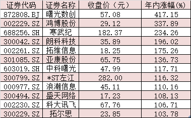 表:年內(nèi)累計(jì)漲幅超100%的算力股