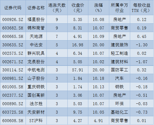表:連續(xù)上漲3日且今日收盤漲停股一覽