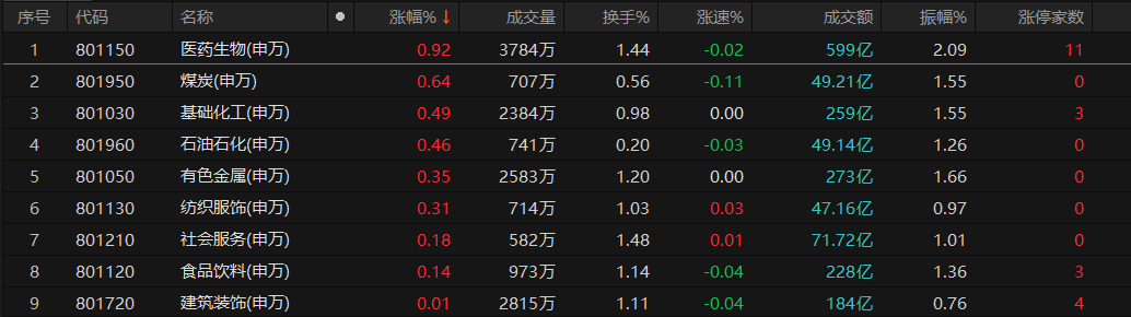 漲停股方面,今日有38只個(gè)股以漲停價(jià)報(bào)收,其中,有7只個(gè)股股價(jià)已連續(xù)上漲超過(guò)3個(gè)交易日;7只個(gè)股跌停報(bào)收。從申萬(wàn)一級(jí)行業(yè)看,醫(yī)藥生物行業(yè)漲停股數(shù)量居首,達(dá)11只,機(jī)械設(shè)備和建筑裝飾的漲停股數(shù)均為4只。