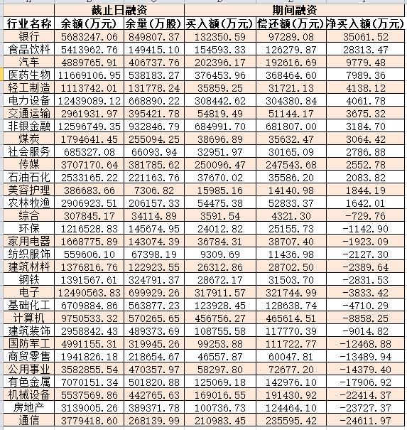 表:8月14日申萬一級行業(yè)兩融交易情況