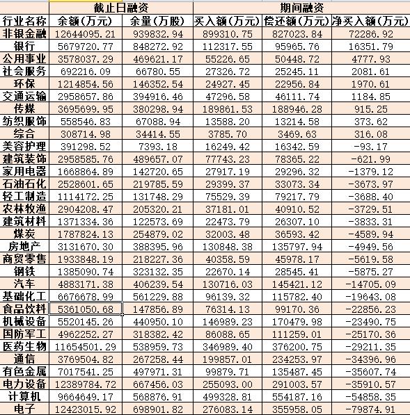 表:8月16日申萬(wàn)一級(jí)行業(yè)兩融交易情況