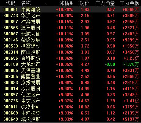 具體看,截至8月28日上午收盤,房地產(chǎn)開發(fā)板塊漲幅居首,達(dá)6.87%。其中,包括中南建設(shè)、華遠(yuǎn)地產(chǎn)、津?yàn)I發(fā)展、迪馬股份等在內(nèi)的24只個(gè)股漲停。